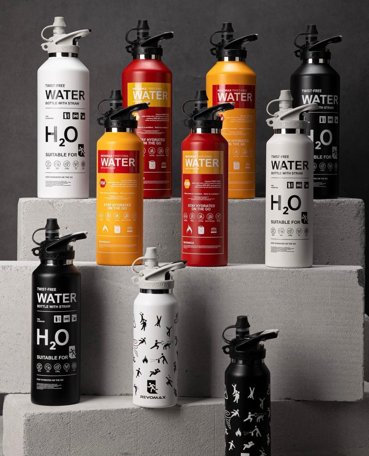 Botella Revomax Serie Extintor 950ml / 32ozRendimiento extremo con un diseño que no pasa desapercibido. La serie Extinguisher (Extintor) de Revomax ofrece casi un litro de capacidad con la máxima pureza del acero 316L. Es la botella definitiva para los que necesitan hidratación constante sin renunciar al estilo